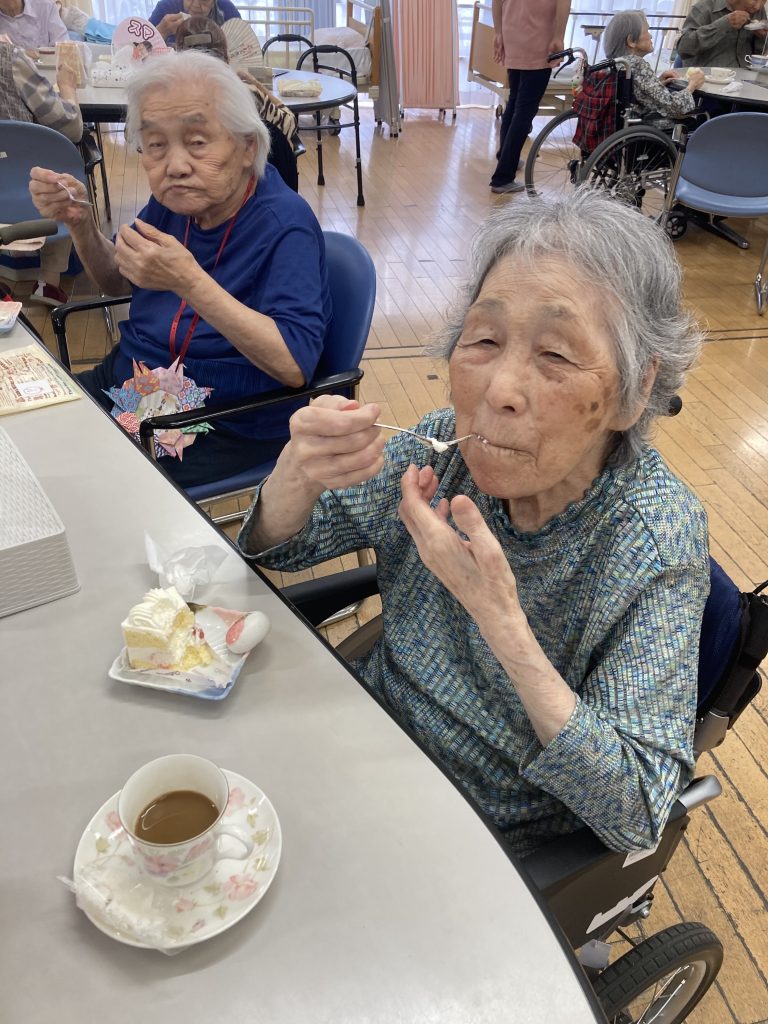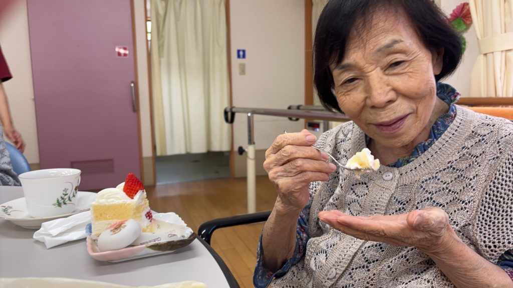 でもやはり、皆さんおやつのイチゴデラックスケーキに大喜び!満面の笑顔でした。 |