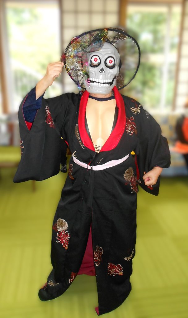 | ハロウィンで仮装するのは悪魔などに連れて行かれないようにするためらしいですので連れて行かれないように今年も仮装をしていただきました。 |
