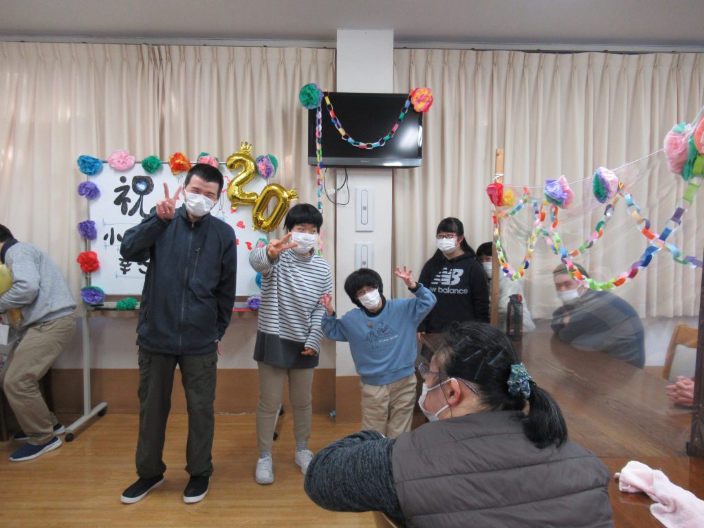 1月12日、やまももでは新年を祝う会と20歳を祝う会を行いました。当日は厨房の職員が祝善としてお赤飯、煮しめなどお祝いにふさわしい昼食を準備してくれました!また、地域のボランティアグループ『ふるさとギター歌う会』の方々が機材を持ち込み演奏くださいました。皆さんのはじける笑顔が多くみられた一日でした。